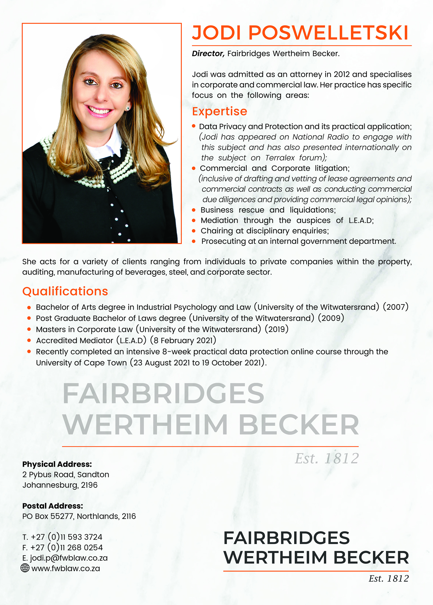 Read further for more information and assistance offered by Jodi Poswelletski of Fairbridges Wertheim Becker attorneys, Johannesburg on this awesome subject!